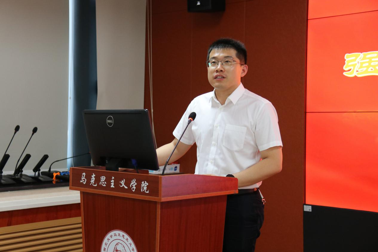 会上,我院青年教师黄翌作了题为《延安时期中国共产党强化政治纪律建设的几点思考》的报告。他从二十大党章中的“六大纪律”谈起,以习近平总书记对严明政治纪律的重要论述为切入点,阐明了开展本次党纪学习教育的重要性与必要性。他围绕党强化政治纪律建设的应有之义,党强化政治纪律建设、维护中央权威的主要抓手和弘扬延安精神、增强遵规守纪的政治自觉等三个方面,剖析和批判了张国焘分裂主义、王明违反党的政治纪律等四个负面典型案例,详细梳理和总结了延安时期党强化政治纪律建设的历史成就与经验启示,并说明了《中国共产党纪律处分条例》对于违反政治纪律行为的具体处分,教育引导全院教职工党员对党忠诚,严守党的政治纪律和政治规矩,始终在政治立场、政治方向、政治原则、政治道路上同以习近平同志为核心的党中央保持高度一致。