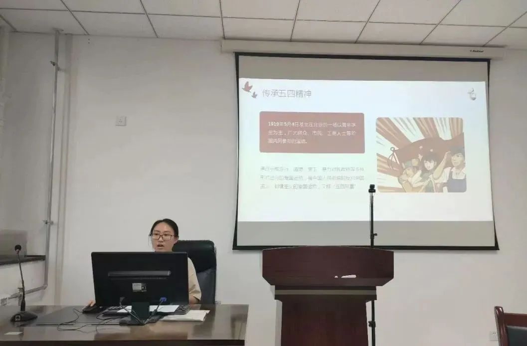 张依芳同学以《弘扬五四精神,践行青春使命》为题,以青年学生组织发起的五四运动为线索,引出为国人所传承至今的“五四精神”,并指出“五四精神”的核心就是爱国主义精神,当代青年只有热爱伟大祖国,才能找到立身之本,成长之基。她带领同学们回顾了广大青年学子在疫情之下用实际行动接力抗疫的典型事迹,同时号召同学们在新的时代背景下,要努力成为民族复兴的主力军,努力成为走在时代前列的奋进者、开拓者、奉献者,以敏锐和热血推动历史进步,赢得更大的光荣。