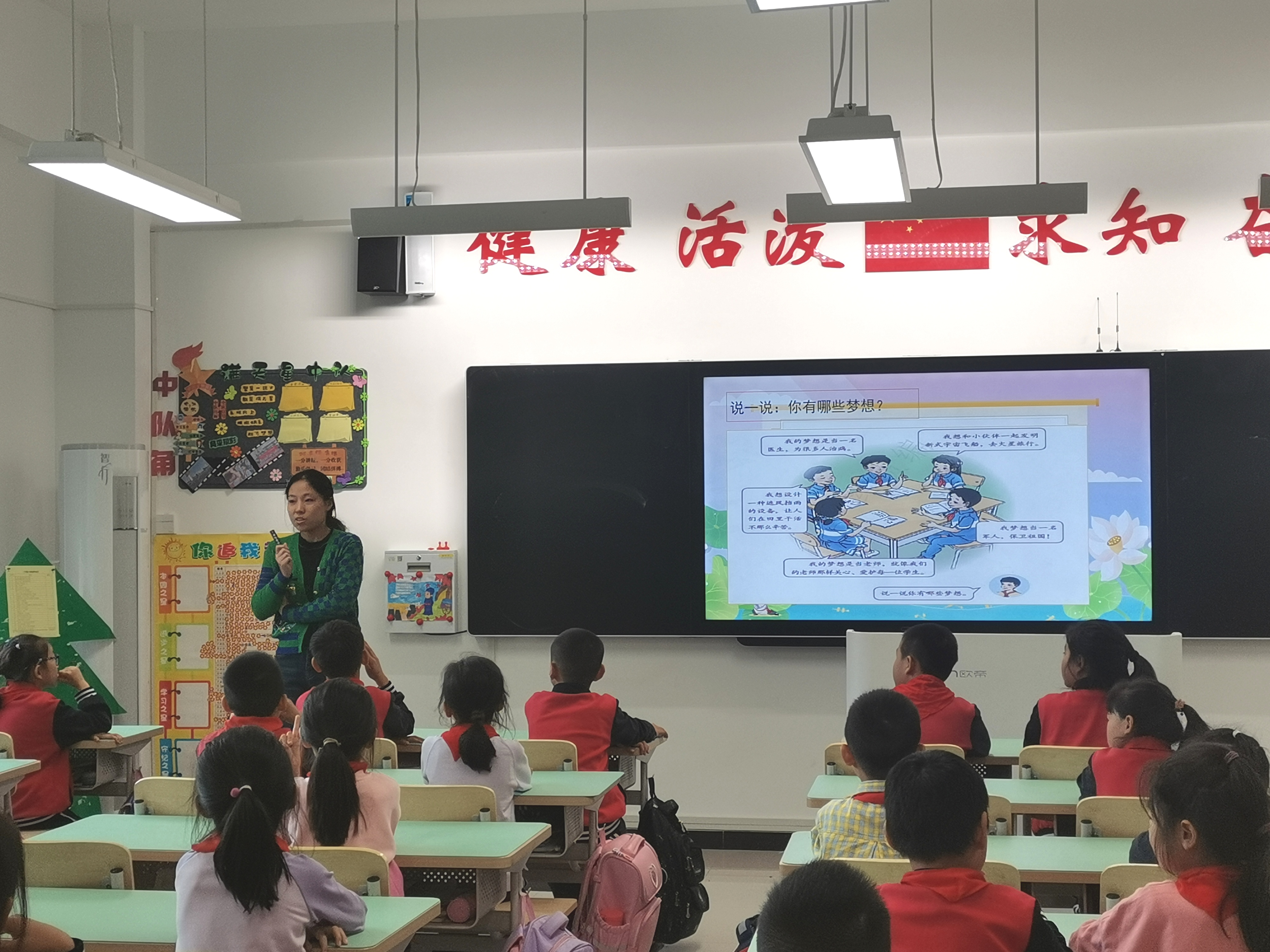 张潇予以《我有一个梦想》为主题,以提问的互动形式让同学们谈论自己的梦想,带领同学们认识梦想是什么,并从个人梦想过渡到民族和国家的梦想,鼓励同学们敢于有梦、勇于追梦、勤于圆梦,报效祖国。