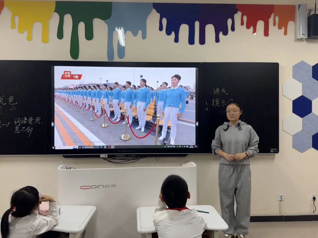 杨姣以《我爱你中国》为题,深入讲解国旗、国徽、国歌的历史底蕴与精神内涵,强调爱国主义不仅体现在对祖国山河的热爱,更要落实在日常生活实践中。
